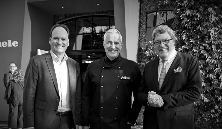 Nach dem großen Mitarbeiterfest im Sommer und dem Dinner auf der IFA lud Miele am Freitagabend vor Beginn der Herbstmesse auch noch Kunden und Geschäftspartner aus dem Küchen- und Möbelhandel zu einem Jubiläumsevent auf Gut Böckel ein. Es gab einen Blick auf die 125-jährige Historie, musikalische Begleitung durch den Konzertpianisten Vladimir Mogilevsky und Flying Dinner aus der Sterneküche von Alexander Herrmann.
