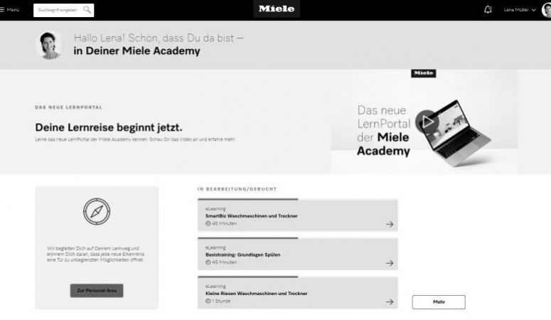 Miele hat ein neues digitales Lernportal für Händler und Servicemitarbeiter eingeführt. Nutzer können sich eigene Trainings zusammenstellen – von Online-Kursen bis zu Präsenzveranstaltungen. Das Portal deckt Produktgruppen für Haushalt und Professional ab und hat auch interaktive 3D-Ansichten in petto.